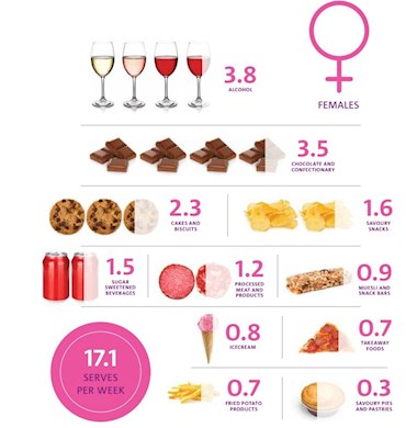 Figure 1: Weekly serves of discretionary foods for average Australian woman
